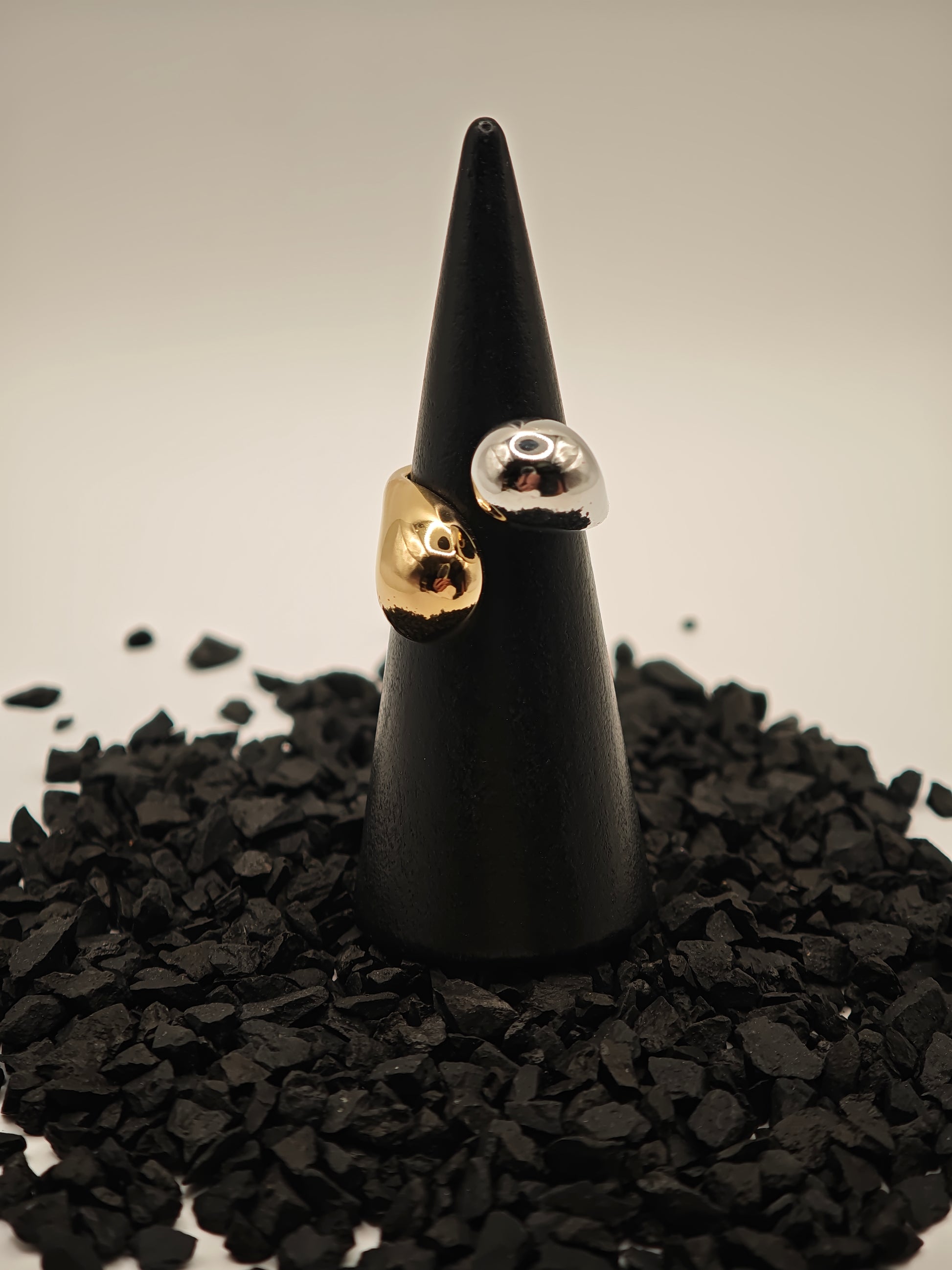 Bague duo réglable en acier inoxydable style goutte.