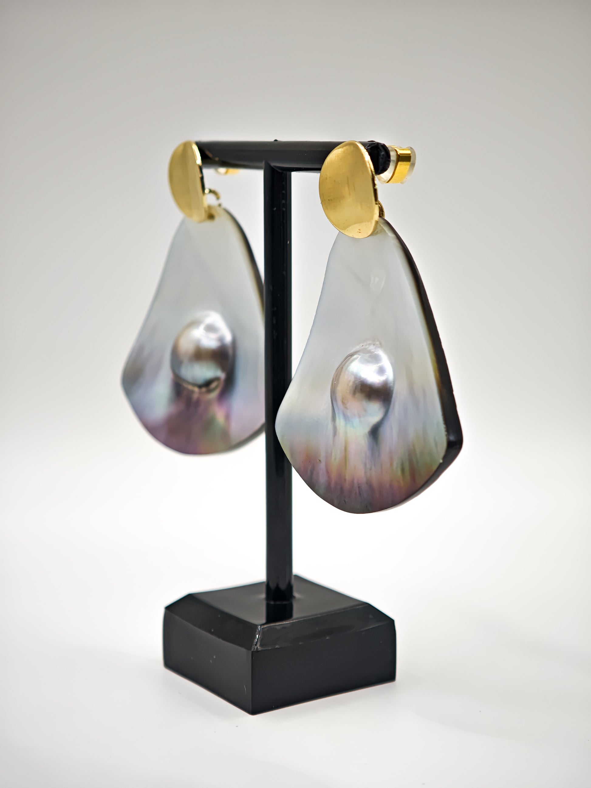 Boucles d'oreilles avec deux mabés de Tahiti.