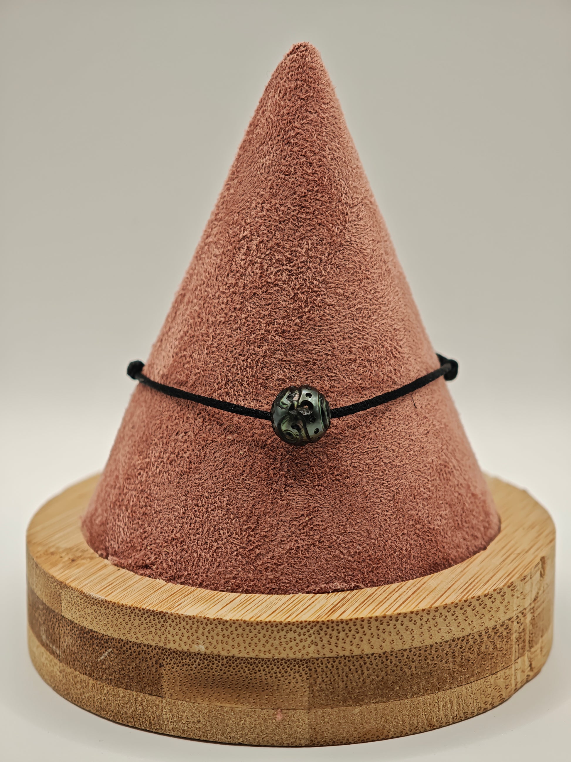 Bracelet en fil de soie réglable avec une perle de Tahiti gravée